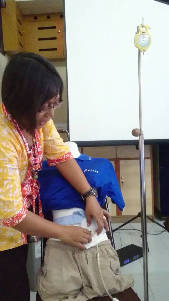 Then the event continued with some training related to CAPD services such as Exit site treatment (catheter outlet hole), CAPD fluid exchange, penatalksanaan blockage on catheter hose etc.